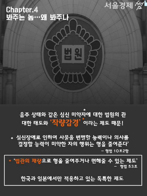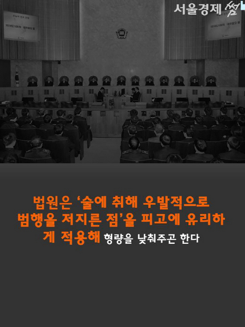 술 마신 게 감형 이유가 되는 대한민국의 현실을 서울경제의 카드뉴스 ‘놈놈놈, 그리고 봐주는 놈’ 으로 만나보시죠. , 이정윤·이종호·백상진 인턴기자