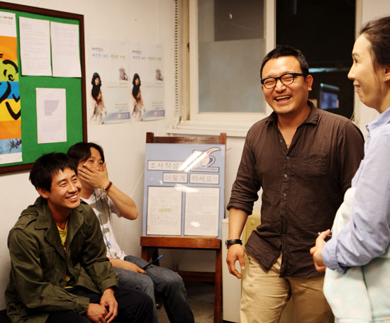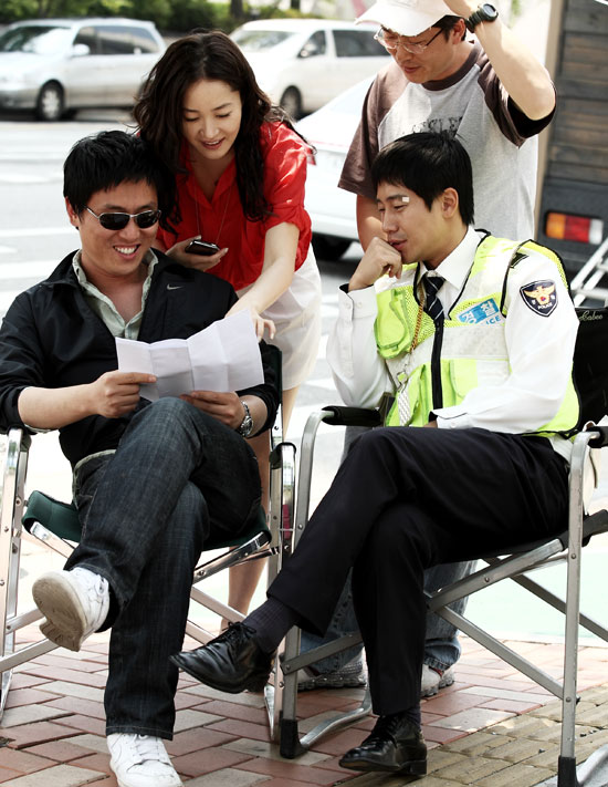 신하균이 돌발 발언이라도 한 것일까. 신하균 앞에 교복을 입고 서 있는 엄지원이 미소를 짓고 있고, 현장을 지휘하던 이해영 감독은 터져 나오는 웃음을 참지 못했다.