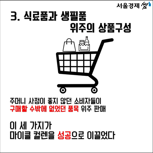 식료품과 생필품 위주로 상품을 구성한 전략도 적중했습니다. 아무리 저렴하게 판매를 하더라도 주머니 사정이 좋지 않던 소비자들은 쉽게 지갑을 열 수 없었습니다. 하지만 꼭 구매할 수밖에 없는 생필품 위주로 판매했기 때문에 ‘킹 컬렌’의 재고상태는 늘 양호하게 유지됐습니다.