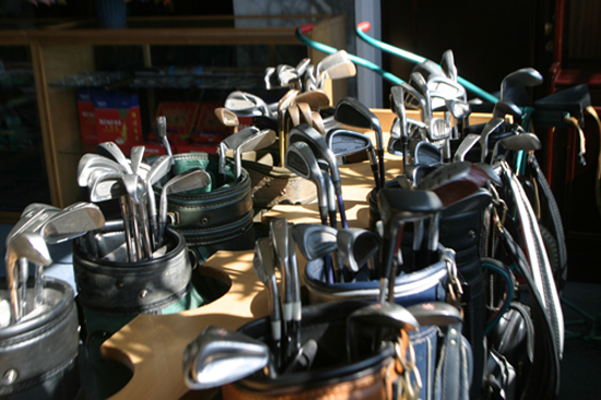 클럽하우스의 내부에앉아 물한모금을 마시면서 진열된상품을 바라보니 모자는 거의다 미국의 핑, 타이틀리스트, 일본의 혼마가 대부분이었고 대여채는 미제, 일제가 섞여져 있었다.