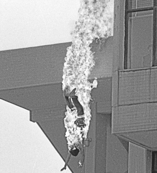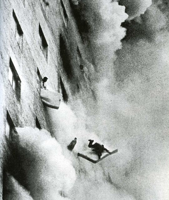 71년 성탄절, 대연각 호텔에서 불이 나 171명이 사망했다. 현장에 도착해보니 어디에 카메라를 갖다대야 할 지 모를 정도였다. 11층과 12층에서 남자 두 명이 매트리스를 안고 뛰어내릴 듯해서 정신 없이 셔터를 눌렀다. 현장에 사진기자들이 많았기 때문에 남 보다 좋은 사진을 찍을거라고는 생각 조차 못했다.