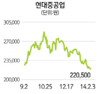 현대중공업의 매출은 조선, 해양, 플렌트, 엔진기계 등으로 다양하다. 최근 악재가 잇따라 터지며 주가 하락 폭이 컸다. 파나마 운하 확장공사 지연 위기, 현대오일뱅크 실적 악화에 따른 지분법 평가손실 전망과 벌크선운임지수(BDI)의 급락 등이 지속적으로 터져 29만원대 주가가 어느덧 20만원 초반대까지 밀려 내려와 있다.