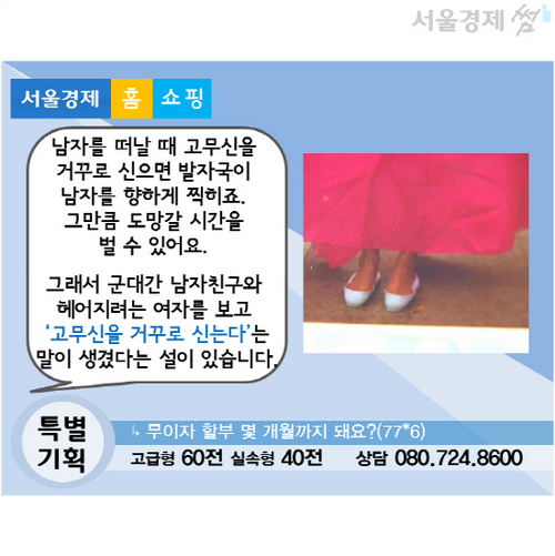 남자친구가 군대에 가 있는 사이 여자가 헤어짐을 고하면 ‘고무신을 거꾸로 신었다’고 한다. 여자의 마음과 거꾸로 신은 고무신은 무슨 관계가 있을까? 다른 신발도 많은 데 왜 하필 고무신일까.