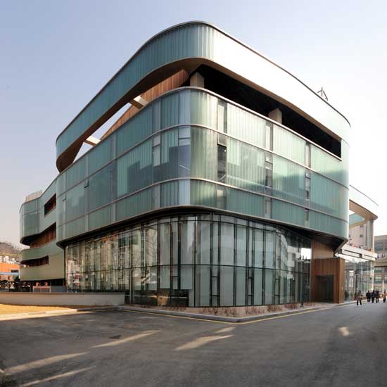 지루하고 경직된 기존의 캠퍼스 속에 새로이 계획된 도서관건물은 캠퍼스의 젊은 에너지로 충만한 중심공간을 만들어내는데 성공하고 있다. 중앙부에 아트리움 공간을 두고 계획된 도서관의 반투명 U형 글래스를 사용한 유연한 곡면의 유리외벽은 그 중성적인 디자인으로 인하여 스스로의 형태를 과시하기보다는 주위의 건물들을 수용하며 겸손하게 자기의 모습을 만들어내고 있다. 그러나 이점이 오히려 내부의 아트리움 공간을 더욱 드러나게 하며 부드러움과 풍요함으로 캠퍼스에 새로운 생명력을 만들어내는 비범한 건축이 되게 하고 있다. 특히 내부 아트리움의 주위 공간을 통로공간과 함께 가벼운 독서공간을 겸하도록 한 계획은 결과적으로 도서관 건축에서 약점이 될 수 있는 소음과 시각적인 간섭을 적절히 제어한다.