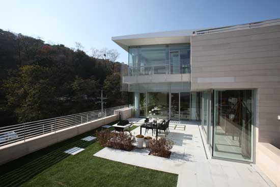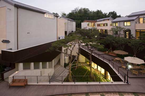 자연공원에 인접한 연립된 단독주택단지가 가질 수 있는 장점을 활용해 잊혀져 가는 과거 전통마을의 분위기를 구현해낼 수 있다는 가능성을 엿보게 한다. 세대간의 조망과 내외부 공간의 프라이버시를 적절히 확보시키고 있으며, 원지형의 지표면 레벨을 최대한 활용하여 디자인함으로 지하층레벨의 각 주호로 진입하는 방법이 거주자들간의 커뮤니티형성을 자연스럽고 부드럽게 하고 있다. 전통주택의 사랑방이나 별채의 개념을 도입한 1층레벨의 사랑방배치는 필로티 하부공간으로 뒷산으로부터 흐르는 청량한 바람길을 자연스럽게 유도하고 있어 단지 전체에 시각적인 풍성함과 함께 자연의 에너지의 혜택을 고르게 받도록 하고 있다. 건축은 과장된 표현없이 가족생활을 그대로 반영한 소박한 외형이 주조를 이루고 있으며 그들의 조합은 좋은 리듬을 만들어 내고 있다.