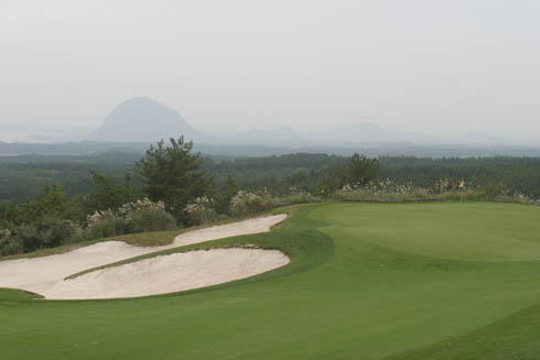 뒤편 멀리 한라산 에서 내려오는 태고적 바람과 자연이 만든 이 오름 위에서 산 아래 페어웨이를 향해 백구를 날린다고 상상을 해 보라.