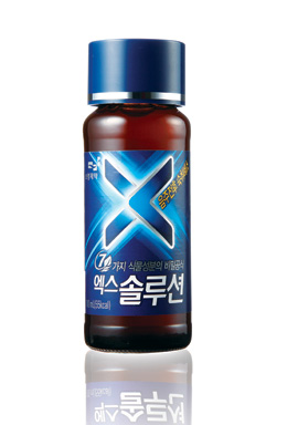 엑스솔루션에 들어간 일곱 가지 식물 성분은 아세트알데히드와 알코올 분해, 갈증 해소에 도움을 주는 마름 추출물, 알코올 분해에 효과적인 헛개ㆍ갈근ㆍ강황과 간 기능 개선에 도움을 주는 미배아, 세포 사멸 억제, 노화 예방에 도움을 주는 녹차 잎, 인체의 독소 배출에 도움을 주는 인진쑥이다.