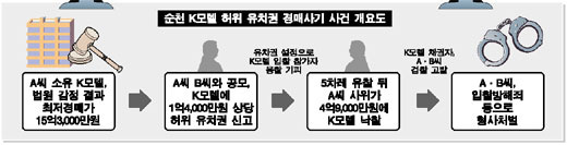 실제로 광주지방법원 순천지원에 따르면 최근 진행된 전남 순천시의 K모텔의 경우 최초 경매가가 15억3,000만원이었으나, 소유자 A씨와 제3자인 B씨가 짜고 허위로 1억4,000만원의 유치권 신고를 했다. 이 때문에 K모텔은 5번 유찰된 뒤 4억9,000만원(낙찰가율 31.9%)에 소유자 A씨의 사위에게 낙찰됐다. 이를 나중에 안 채권자가 이들을 고소, A씨와 B씨는 입찰방해죄로 형사처벌을 받았다.