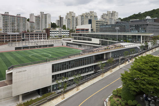 숭실대학교 학생회관은 정문과 캠퍼스의 중심부를 잇는 결절점이면서 운동장과 면하는 협소한 대지와 심한 경사지라는 어려운 조건을 안고 있다. 설계안은 방ㆍ복도ㆍ경사로로 구성된 단순한 공간조직이 운동장을 'ㄱ'자로 길게 감싸면서 12m의 단차를 자연스럽게 잇고 있다. 각층의 방들은 외부와 직접 연결돼 건축물 전체가 캠퍼스의 관류공간의 역할을 하고 있다. 반면 전체 형태는 주변 맥락에 드러나지 않으며 오히려 측면과 배면에 있는 인접 건축물의 도입부처럼 인식된다. 심사위원회는 이러한 형태와 공간의 역발상 전략을 통해 다양한 활동과 만남을 담는 새로운 캠퍼스 건축 유형, 더 나아가 열린 도시건축 유형을 제시하고 있다고 평가했다. 과감한 시도와 실험을 수용한 대학 측의 태도와 협력, 꽉 짜인 예산 범위 안에서 이루어낸 완성도 높은 시공 또한 주목을 받았다.