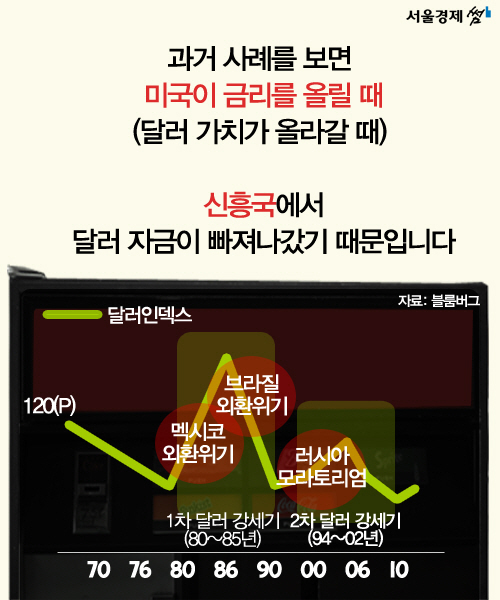 금리 인상 시점에 세계의 눈이 쏠리고 있는 이유는 뭘까요. 바로 신흥국 자본 유출 우려 때문인데요. 왜 이런 우려가 나오는 건지 서울경제 썸이 ‘경제 찰지게 설명해주는 서경(경찰서)’를 통해 알기 쉽게 풀어드립니다!!