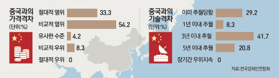 △김도훈 원장=중국 경기 둔화를 비관적으로만 볼 필요는 없다. 중국 경제가 그동안의 거품을 걷어내고 정상화하고 있다. 이는 중장기적 관점에서 오히려 바람직하다. 문제는 중국 기업들이 우리나라 기업들을 쫓아오는 속도가 굉장히 빠르다는 점이다. 우리나라의 12대 주력 산업이 전체 수출의 80%를 차지하는데 15년 전부터 그랬다. 중국 입장에서 우리는 움직이지 않는 좋은 목표물이다. 중국과 우리나라의 기술 격차가 1.5년이니 2년이니 하는 논쟁은 의미가 없다. 이제는 대등한 상황이다. 기업들도 일종의 충격이 필요하다. 다들 기술력이 좁혀진 것을 걱정한다. 더군다나 한중 자유무역협정(FTA)이 발효되면 통합시장에서 경쟁해야 하는 처지다. 경쟁이 심화하면 적어도 혁신 쪽에서는 우리 기업들의 안일함을 깰 수 있는 계기가 될 수 있다.