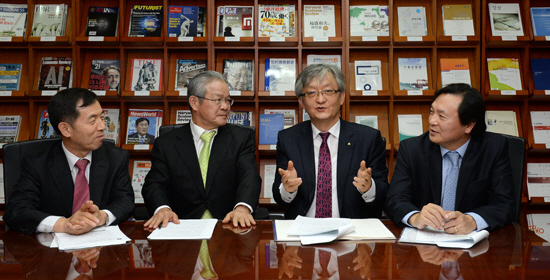 △신 원장=항상 '수출이 얼마 늘었다' '경제가 몇 % 성장했다'는 얘기들을 하는데 새 경제팀은 이런 지표에 연연하지 않아야 한다. 양보다는 질적 측면에서 수출액이 아닌 수출산업의 수익성을 올리는 정책이 필요하다. 다른 현안들도 같은 맥락이다. 당장 우리 경제의 과제인 부실기업 정리, 투자부진 문제도 질적 관점에서 해결책을 마련해야 한다. 기업의 수익성을 올리고 가계는 건전성을 높여야 한다. 이 문제와 관련해 국민들이 좋아지고 있다는 것을 피부로 느낄 수 있도록 하는 것이 새 경제팀의 과제다.
