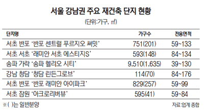 10~11월 사이 서울 강남권에는 총 1만3,400여가구의 재건축 물량이 등장할 예정이다. 조합원 물량을 제외한 일반분양만 2,500여가구에 이른다.