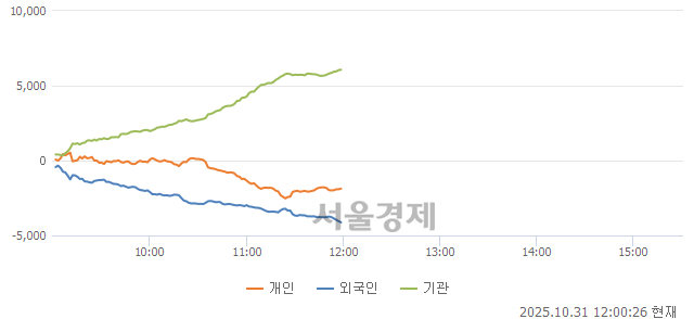 투자자별 동향을 살펴보면, 기관이 홀로 매수 포지션을 취하고 있는 반면, 개인과 외국인은 동반 매도세를 보이고 있다. 기관은 6,058억을 순매수 중이며, 개인은 1,789억, 외국인은 4,203억을 각각 순매도하고 있다.