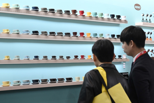 19일 서울 강남구 코엑스에서 열린 제24회 서울카페쇼를 찾은 관람객들이 다양한 색과 크기의 잔을 살펴보고 있다. '한 잔에 담긴, 더 큰 커피 세상'을 주제로 35개국에서 3903개 브랜드가 참여한 이번 카페쇼는 오는 22일까지 계속된다.