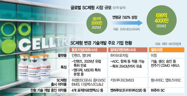업계는 셀트리온의 SC제형 시장 진출로 할로자임과 알테오젠이 양분해온 글로벌 SC 전환 시장에 지각변동이 일 것으로 보고 있다. 할로자임은 세계 최초로 인간 히알루로니다제 기술을 상용화한 기업으로 글로벌 제약사들과 협력해 다잘렉스, 허셉틴, 옵디보 등 다수 제품의 SC 제형화를 지원해왔다. 알테오젠 역시 키트루다를 비롯해 세계 최초로 ADC 의약품인 엔허투의 SC 제형을 개발 중이다. 셀트리온 관계자는 “셀트리온은 SC 제형 의약품의 개발, 허가, 대량생산, 글로벌 공급까지 전 과정을 수행할 수 있는 국내 유일한 풀 밸류체인 기반 기업”이라며 “단일 기술만 보유한 기업들과 구조적으로 차별화된 경쟁 우위를 확보하고 있다”고 강조했다.
