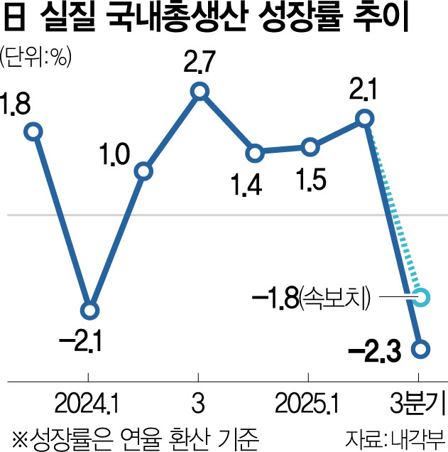 일본 3분기 GDP -2.3% 역성장…기업 투자 위축 심화