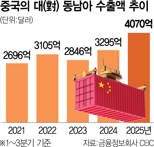 중국이 대동남아시아 수출을 대폭 늘리며 올해 이 지역에서 사상 최대 무역흑자를 기록할 것으로 보입니다.